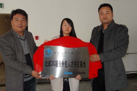 11月20日,我院电子信息学院与北京邮电大学3G服务外包基地以引企入校形式,合作建立的“服务外包人才供应基地”在我院图书楼7-702室举行了挂牌仪式。我院实践教学管理处张鑫处长、电子信息学院王兴君院长、电子信息党总支张鹏书记、北邮3G西北中心邢亚平总经理、业务部王存荣经理等参加挂牌仪式,仪式上张鑫处长和邢亚平总经理为服务外包人才供应基地进行了揭牌。