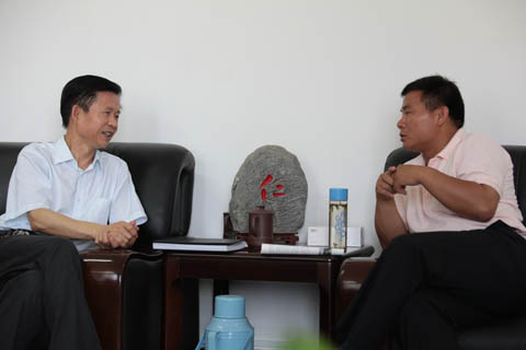 中国青年报记者梁国胜(右)采访学院党委书记张文斌