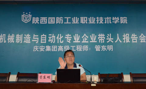 应机械工程学院邀请,5月16日中航工业庆安集团公司高级工程师兼机械制造与自动化专业企业带头人管东明在北校区报告厅为师生作专题报告,报告会由机械工程学院办公室主任李俊涛主持,机制专业相关专业教师及机制311级、312级240余名学生参加此次报告会。
