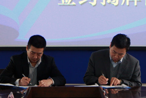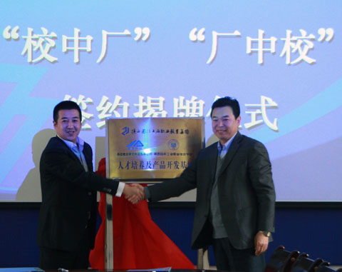 仪式上王明哲副书记和王伟副总经理进行了校企合作工作站协议的签字仪式,并为工作站进行了揭牌。