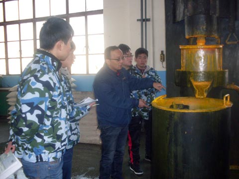 12月3日学生进站后,陕西宝塔山油漆股份有限公司总经理助理韩平印做了企业概况介绍,使学生对企业发展历史、产品结构、企业文化、职业素养要求有了基本的认识。公司安环部袁泉势经理就企业生产纪律要求、生产操作安全等方面对学生进行了培训。课程组教师就课程的教学任务做了安排,下发进站学习任务书,正式进站学习。进站教学任务由校内主任教师及企业兼职教师共同完成。这种理论联系实际的上课方式极大提高了教与学双方的积极性,通过现场教学让课堂上理论知识在实践中找到了对接,有利于理论知识的活学活用,对促进教学质量的提高和加强校企合作共同发挥育人功能有着重要意义。