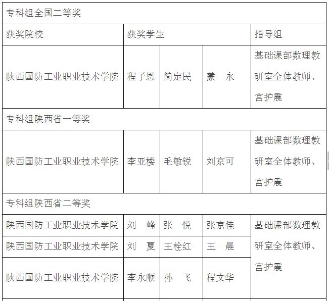 我院学生获奖情况一览表:(同组学生排名不分先后)
