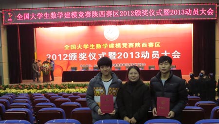 2012年12月13日下午, 全国大学生数学建模竞赛陕西赛区2012颁奖仪式暨2013动员大会在西京学院举行。我院代表队荣获全国大学生数学建模竞赛“国家二等奖”,同时取得陕西省赛区“一等奖”1项, “二等奖”3项的喜人成绩。