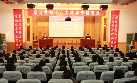张书记就“学习贯彻十八大精神”分别从:中国特色社会主义道路问题;“五位一体”的社会建设布局问题;文化与人的素质建设问题;关于办好人民满意的教育问题;提高党的建设科学化水平问题等五个个方面进行了讲解。张书记深入浅出的讲解,使我院广大师生党员对于十八大精神的认识上了一个高度,激起了我院党员学习十八大精神热情。