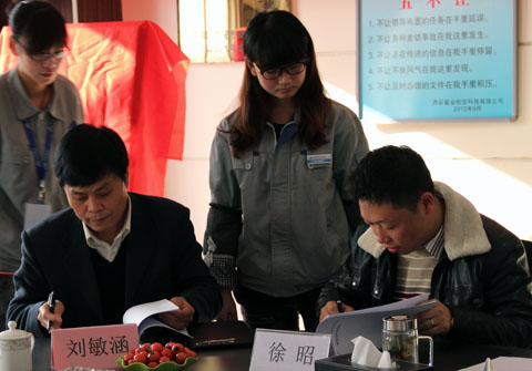 最后,嘉业公司行政人力部部长徐红梅,数控工程学院院长侯晓方,分别代表实施部门发言。双方表示将在高技能人才订单培养、企业员工培训、企业专业带头人与兼职教师的聘任、联合进行科研攻关与技术革新、学生进站学习与教师下厂锻炼、校中厂建设等方面开展深度合作。并强调将尽快落实协议内容,通过“校企合作工作站”真正的把校企合作做成一个样板工程,共同培养既有良好职业素质又有较强操作技能适应企业需求的高端技能型人才。