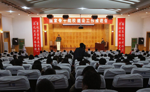 张权民院长在大会上作了《团结一致 快马加鞭 全力打好骨干院校建设与验收工作攻坚战》的重要讲话,讲话中指出召开此次大会的目的在于督促大家按照建设任务书100%完成建设任务,准备迎接明年省级、国家级验收。我院骨干院校建设工作已进入倒计时阶段,张院长要求全院教职员工:一、要认清形势、自觉行动;二、大干快进、完成任务;三、全力应战、确保通过;四、人人有责、力争优秀,把骨干院校建设工作作为当前最紧迫的工作来抓,全院上下紧密配合,通力合作,切实保障骨干院校建设、验收任务顺利完成。