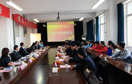 9月17日上午,台湾明新科技大学董事长张绍钧、董事会部分成员及两岸交流中心主任杨秋兰等一行在省教育厅国际合作与交流处副处长、陕西教育国际交流协会秘书长孙建宁的陪同下来我院回访交流。学院在北校区行政楼三楼会议室举行座谈会,双方就两校合作与交流进行了商谈。院党委书记张文斌、院长张权民、副院长贾宝勤、刘敏涵出席座谈会,学院党政办、教务处、实践教学管理处、团委等相关部门负责人与我院暑期选派赴台学习的18名学生参加座谈。