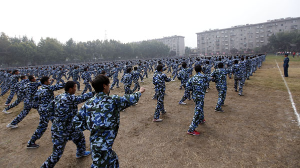 图2 党委书记张文斌检阅受训学生