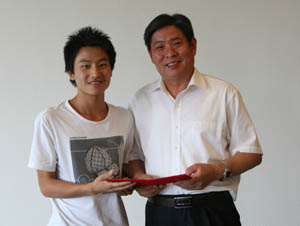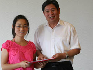 图4 陕西省委教育工委副书记、省教育厅厅长杨希文为张婉莹、张童颁发证书