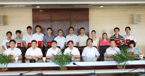 图3 省委教育工委、省教育厅领导与见习大学生合影留念(张婉莹后排右3,张童后排左1)