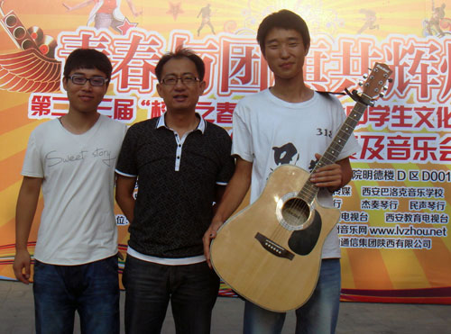 7月5日,在西安文理学院隆重举行“陕西省吉他弹唱大赛”,全省共有56支参赛队伍参赛,经过初赛层层选拔,我院由团委艺术指导中心主任常继红老师指导并带队的陈宇航和杜贴心两名选手在进入决赛的20余所高校代表队中脱颖而出,两位同学分别以原创歌曲《痕迹》和《秋天的眼泪》赢得了在场观众的阵阵掌声和评委的高度赞扬,最后以出色的表现分别荣获了大赛三等奖,充分展示了我院大学生青春向上的精神风貌和艺术教育的成果,也为我院赢得了荣誉。