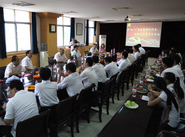 会后,在南校区二楼会议室召开了庆“七一”先进党组织和优秀共产党员座谈会。座谈会上,与会人员与学院领导进行了亲切的交谈,回顾了党的辉煌历史,谈感想、讲体会,并对学院发展提出了意见和建议。党委书记张文斌、党委副书记刘少阳、党办主任王建设、组织人事处处长李周平、副处长沈惠等出席了座谈会。