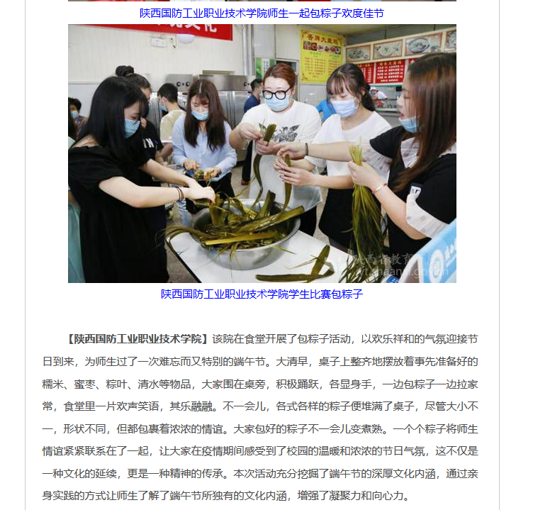 下一条:【西安发布】【华商网】【西部网】【新浪网】端午情意浓 陕西国防职院大学生比拼包粽子