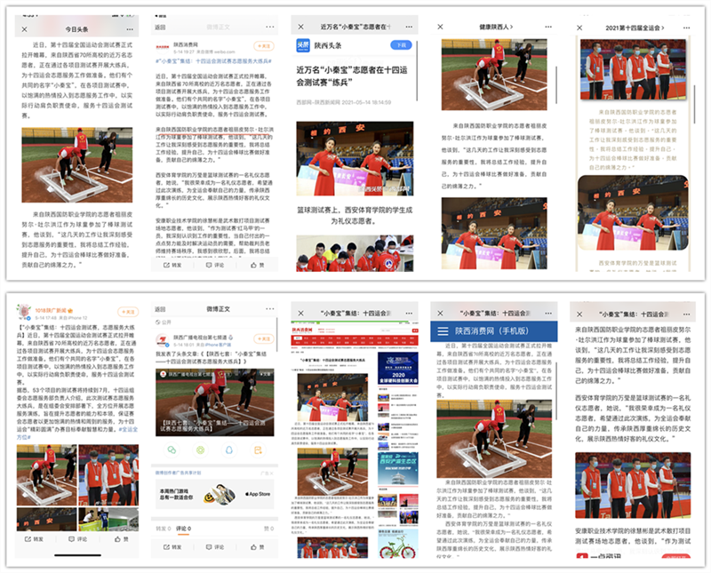 《陕西日报》2021年5月17日(记者张江舟)题:近万名赛会志愿者全面服务十四运会测试赛
