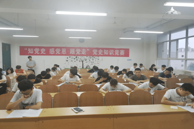 为了教育引导学生增强“四个自信”,传承党的优良传统和革命精神,结合“党史”学习教育活动,以受奖助学生为主体,开展党史知识竞赛。6月8日晚,各分院推荐选手在3-522教室进行了闭卷笔试,考试内容涵盖党史学习教育四本指定学习教材;6月10日晚,笔试表现优秀的11名同学在4-426教室进行了第二轮竞赛,围绕百年党史中的重要人物、重大事件、重要时期等关键知识点,通过油画题、诗词题、提示题等丰富多样的竞答题目,利用顺序答题和抢答的形式带领学生们在紧张激烈、环环相扣的竞赛比拼中学习党史。使以受奖助学生为主体的青年学子们真正做到知党爱党。