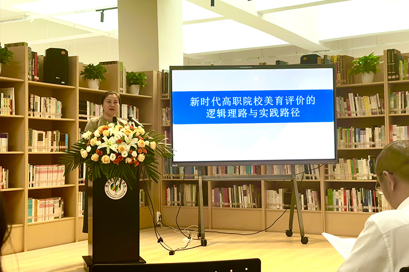 艺术与设计学院院长管阳作为副主任委员,代表学校作题为《新时代高职院校美育评价的逻辑理路与实现路径》的汇报。管阳围绕国家美育评价政策,从专美融合的课程体系构建、课程资源建设、实践平台搭建、实践活动设计及美育信息化管理与评价六方面做以汇报,向与会代表展示了我校在“美育与专业融合、审美与素质共生”方面做出的成果,受到了与会专家的充分肯定。