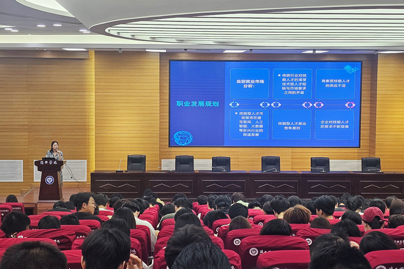 为深入贯彻落实国家关于促进高校毕业生就业创业的政策精神,积极应对人工智能时代的就业挑战,6月28日下午3点,人工智能学院在四号教学楼学术报告厅开展了“大学生就业引航计划”系列宣讲会。本次活动特邀西安鑫垚陶瓷复合材料股份有限公司人力资源部部长史玲芳主讲,2025届辅导员老师以及大二在校生共500余人参会。