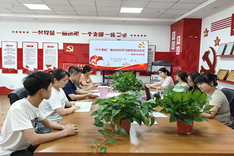 为深入开展党纪学习教育,推动党纪学习落地见效,引导全体党员教师自觉学纪、知纪、明纪、守纪。6月27日下午,电子信息学院党总支数字通信教师党支部在党员之家组织开展党纪学习教育专题党课,支部书记王海梅讲授党课,支部党员及学生入党积极分子参加专题党课学习。