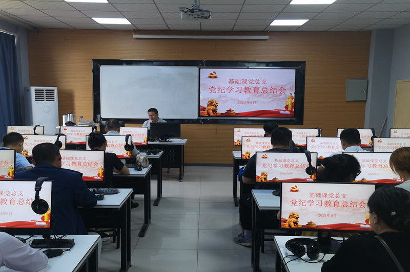 2024年9月24日下午,基础课党总支在北区5-604语音室开展党纪学习教育总结大会,会议有基础课党总支书记权华主持,党总支体党员参会。