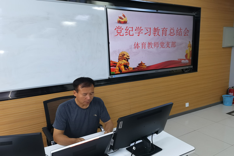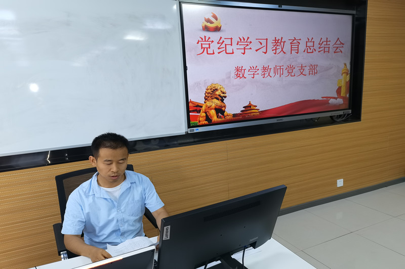 会议第二阶段,基础课党总支各支部进行党纪学习教育总结。外语教师党支部书记杨文革、体育教师党支部书记王茂利、数学教师党支部委员袁睿泽分别就本支部党纪学习教育开展情况进行总结汇报。