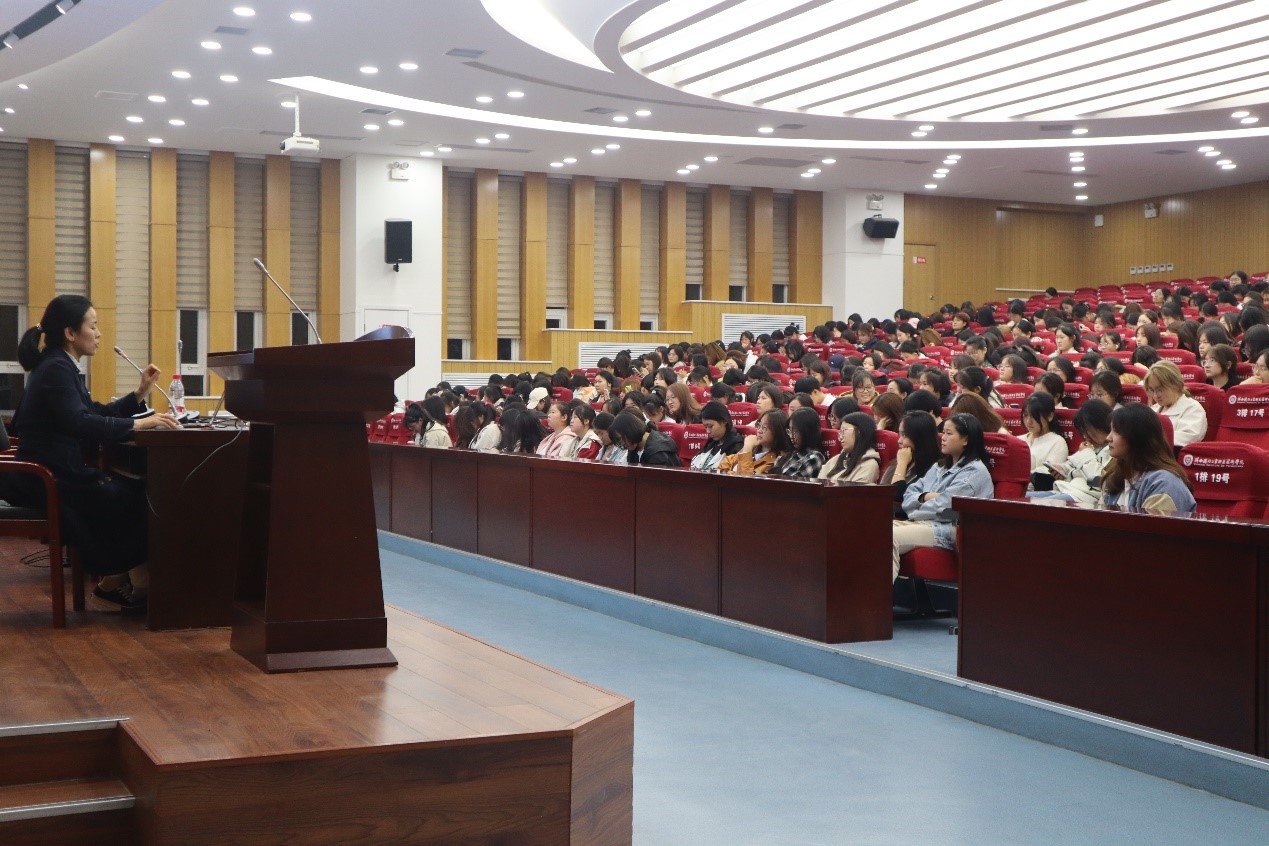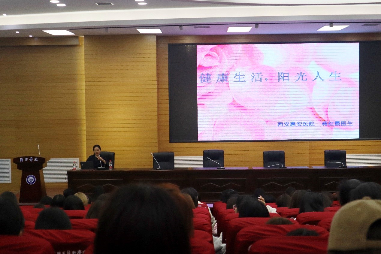 讲座期间,蒋主任结合鲜明生动的事例,介绍了女大学生生理卫生与心理健康,常见妇科疾病以及艾滋病的预防,并倡导女生要正确认识女性生理健康,做到科学防护;倡议男女学生文明恋爱,通过探析爱的本质,学会爱自己、爱他人,树立正确的爱情,顺利完成学业,收获美好的人生。