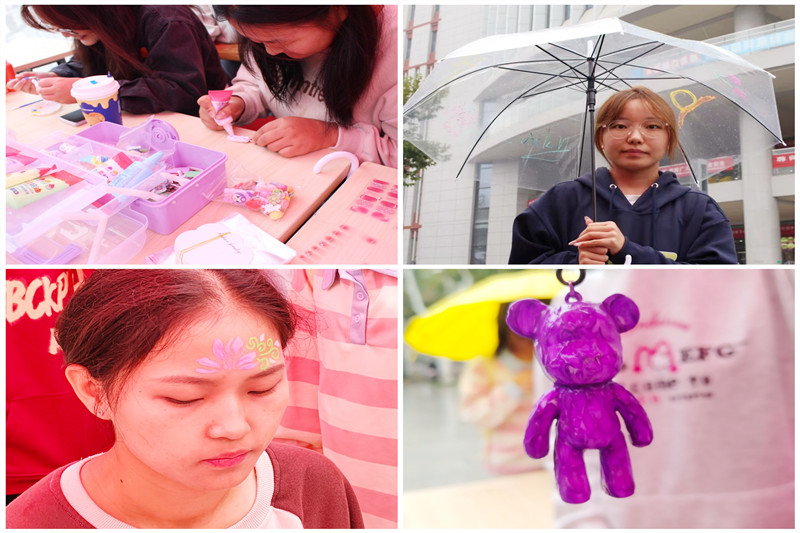 活动伊始,主办方精心布置了活动现场,为同学们准备了手绘雨伞、奶油胶DIY、手工香囊、无火香薰制作等手工制作项目。在工作人员的的引导下,女生们纷纷动手制作,将自己对美的追求与感悟融入到作品中。