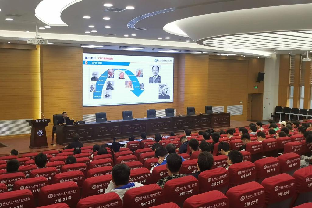 报告会上,刘跃博士围绕计算流体力学(CFD)的概念及发展情况、基本原理、与CAE关系、计算流程、应用举例、发展趋势等几方面开展讲述,并通过具体应用案例,详细演示了CFD应用软件的使用方法和操作流程,对软件界面、参数设置、结果分析等关键环节进行了详细讲解,让师生对计算流体力学(CFD)的应用有了更深入的认识与理解。