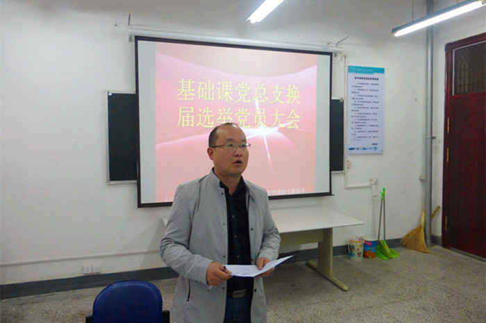 10月12日下午,基础课党总支在南区教学三楼205会议室召开党总支换届选举党员大会。会议由吴玮玮同志主持召开,出席本次会议的有基础课部杨文革同志等27名党员。