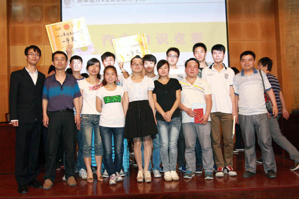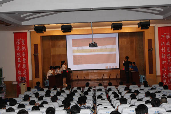 汽车工程学院院长史朝辉首先讲话并宣布竞赛开始,本次竞赛共有七个代表队参加,分五个环节:必答题、抢答题、名词猜猜猜、手势展示和附加题,经过长达两个小时的激烈角逐,一、二、三名分别由汽车3111班代表队,汽配3101班代表队和汽营3111班代表队获得。