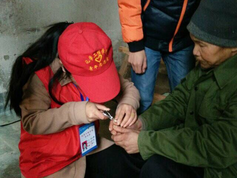 志愿者为老人剪指甲