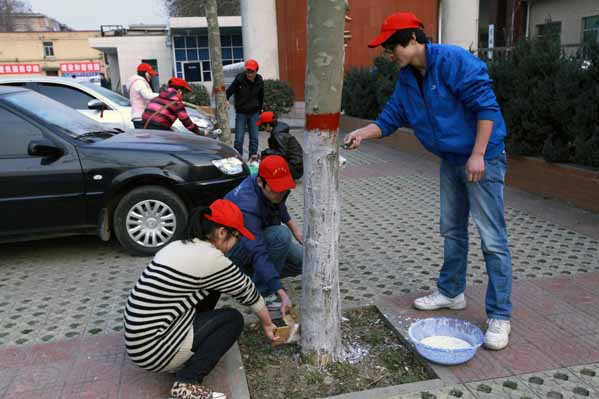 为了深入开展学院“学雷锋,在行动”主题活动,发挥学生党支部战斗堡垒作用和党员的模范带头作用,机械工程学院学生党支部于近日组织学生党员和入党积极分子在学院南校区进行了义务刷树、绿化校园活动。在机械工程学院学生党支部书记李俊涛的带领下,近50名学生党员和入党积极分子对教学二楼前广场和男生公寓前道路两旁的树木进行了防虫粉刷。此次活动旨在唤起党员和广大师生绿化、美化校园意识,增强师生爱护校园、人人有责的主人翁意识,同时也充分发挥学生党员创先争优意识和志愿意识。此次活动得到了广大师生的一致好评。