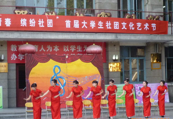 学院首届社团文化艺术节于2012年6月中旬顺利召开,院团委书记解辉老师、院团委艺术指导中心主任常继红老师出席了本届社团文化艺术节开幕式,并认真观看了艺术节文艺汇演。