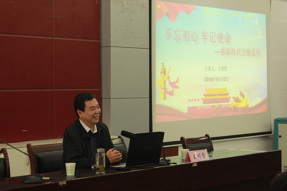 王明哲主要从主题教育开展的目标及要求;主题教育的内容学习解读;主题教育的意义;做新时代合格党员等四个方面作了深入浅出的讲解。