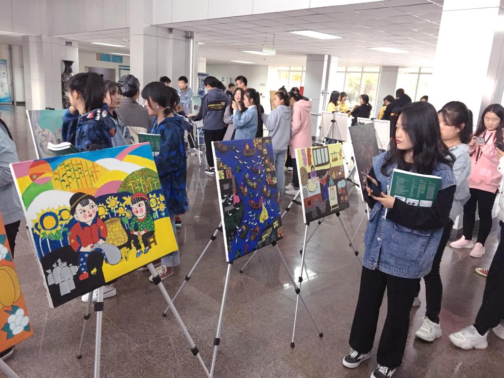 为深入贯彻落实“不忘初心、牢记使命”主题教育工作,凸显文化底蕴,传承民族精神,2019年10月31日下午,艺术学院在图书馆一楼大厅举办了“传承的力量——2018级学生民间艺术创作实践作品展”。此次作品展是艺术学院与鄠邑区农民画展览馆联合开展“民间美术创作实践活动”成果展示。