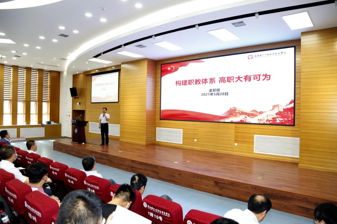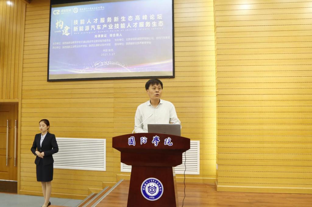 本次论坛邀请副校长孟繁增教授,作题为《构建职教体系高职大有可为》主题报告,邀请陕西省教育科学研究院张建文副研究员做题为《有效推进1+x试点,推动职业教育高质量发展》主题报告,邀请南京工业职业技术大学丁继斌教授解读新能源汽车装调与测试职业技能等级标准,邀请陕西交通职业技术学院汽车学院院长廖发良教授做题为《岗课赛证综合育人实践与思考》主题报告,邀请西安吉利汽车曹海鹏经理对新能源汽车产业发展及人才需求进行分析。