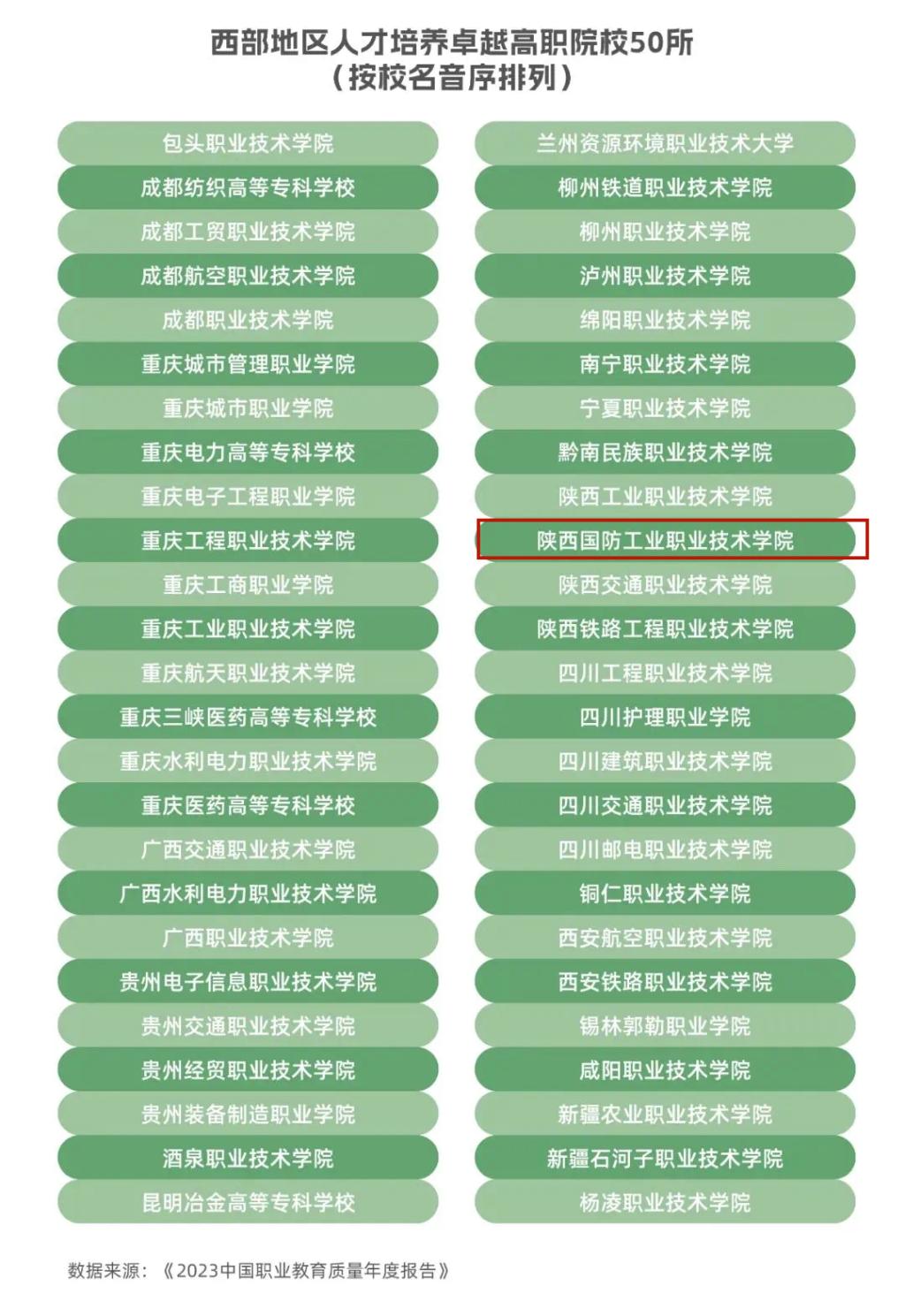2023年12月28日,由中国教育科学研究院编著、高等教育出版社出版的《2023中国职业教育质量年度报告》正式发布。18新利苹果客户端入选西部地区人才培养卓越高职院校50强,也是西部地区服务贡献卓越高职院校50强。