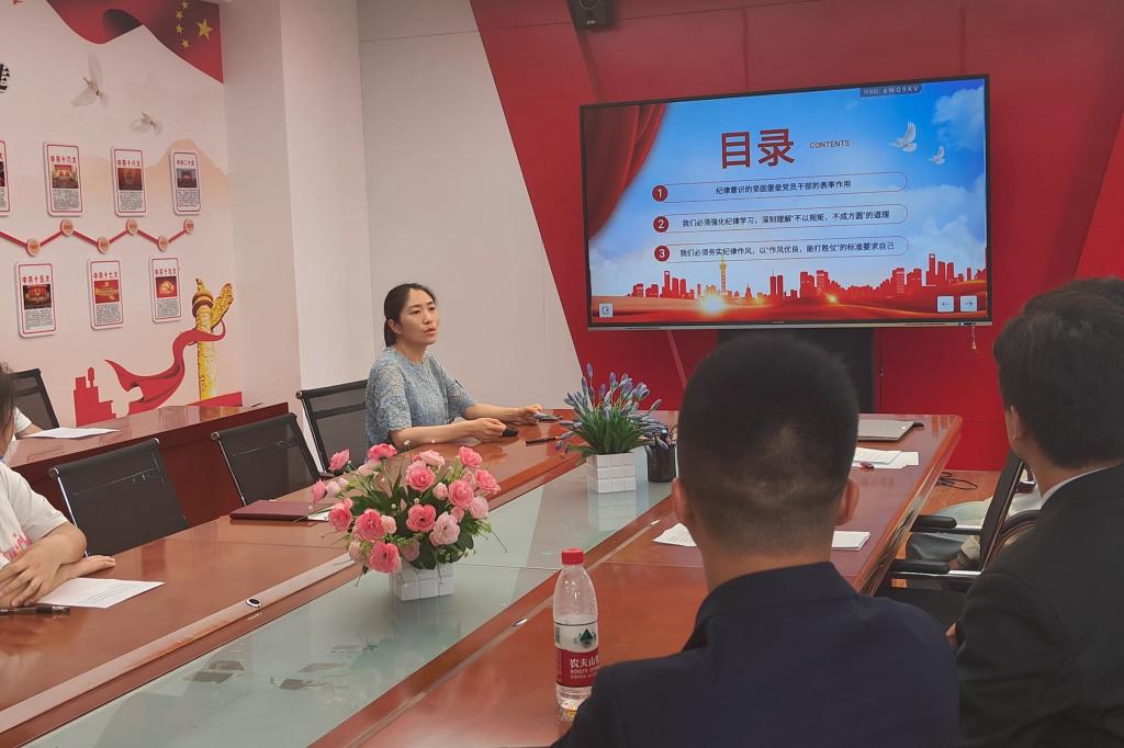 张明同志从增强纪律意识、强化纪律学习和夯实纪律作风等三个方面进行全面讲解,明确我们为什么要学习党纪,并以党纪来约束支部成员日常行为,用明确的处分条例作为生活、工作中的标准。