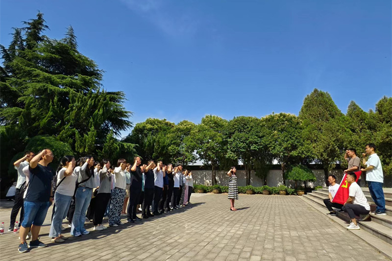 在渭北革命根据地烈士纪念碑前,全体党员向烈士默哀,面对鲜红的党旗,重温入党誓词,深刻缅怀为中国革命事业抛头颅、洒热血英勇牺牲的革命先烈。