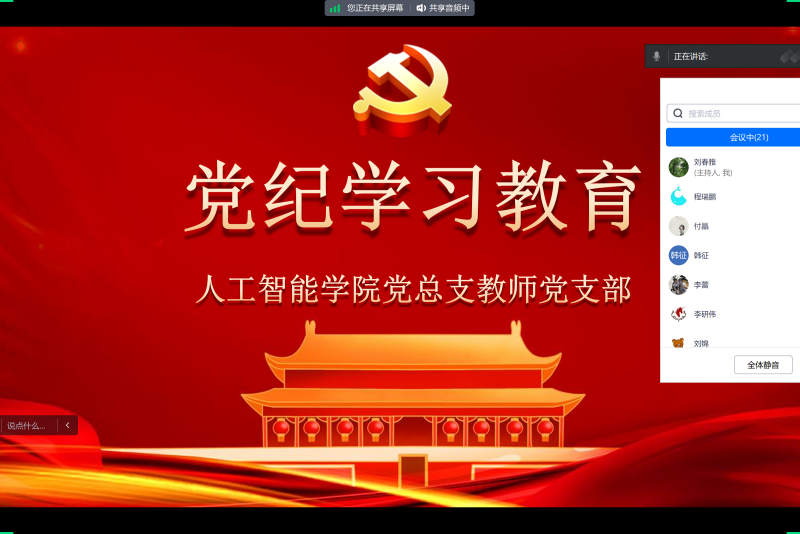 根据陕国职教育组发[2024]3号《关于近期党纪学习教育相关工作的通知》,人工智能学院党总支教师党支部于7月18日下午17:00通过腾讯会议开展党纪学习教育,会议由教师党支部支书记刘春雅主持,全体支部党员参加了本次会议。