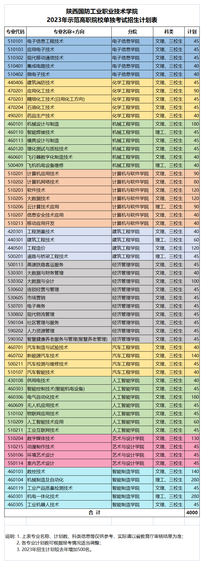 2023年单独考试招生计划