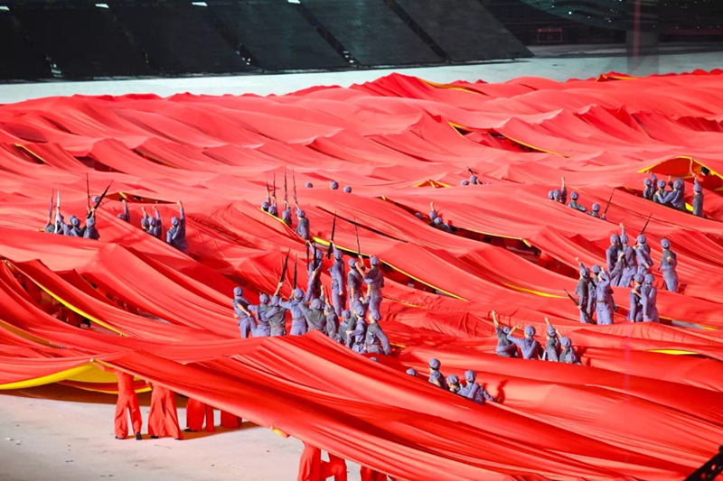 在十四运会开幕式上,我校千余名学生完美演绎十四运会开幕式第二篇章《延安魂》,展现了新时代国防学子良好的精神风貌。国防学子发扬了敬业奉献、追求卓越的精神,用最好的精气神和最精彩的表演沸腾十四运会开幕式的大舞台。以完美的演出向党和人民提交了满意的答卷,以舞动的红绸,激扬的青春震撼全场,展现了国防学院风采。参加这次的群演活动,对学生是磨砺,也是难得的成长机会,在未来的学习、工作、生活的舞台,必将助力他们绽放出更加璀璨的光芒。