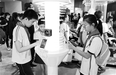 北京市人大附小的学生们在体验国家网络安全青少年科普基地中的网络安全互动项目。本报记者 陈 静摄