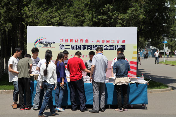 在《网络安全知识手册》发放期间,记者正巧碰到了几名来自北航信息安全系的同学,听他们讲述了在北航接受的安全知识教育的情况。据他们介绍,北航有一条不成文的校训“上网不涉密,涉密不上网”,北航还在学校网站上专门开设了安全知识大讲堂栏目,会及时上传实时发生的一些涉及网络安全的事件,以及防范网络安全的小知识等。他们说,在课堂上他们学习的知识很专业,但现在各种信息获取途径更多了,能看到、听到各种鲜明的案例。去年的首届国家网络安全宣传周体验展,他们很多同学都有去现场观看,觉得受益匪浅。比如,银行卡密码如何被盗?如何保护好自己的银行密码信息等,都是在去年的公众体验展上了解到的。对今天能看到网络安全宣传周活动走进北航的校园,同学们都感到很兴奋。