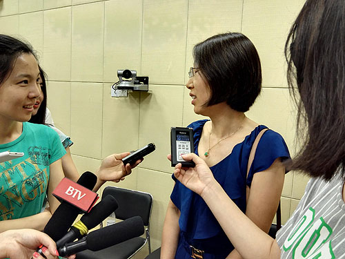 北京市第五十四中学学生家长蒋林林接受记者采访