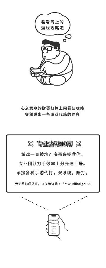 1、骗子利用一些游戏玩家急于提升等级,炫耀自己游戏级别的心态,在网上发布“游戏代练”信息,诱惑玩家入套。