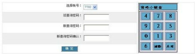 (4)修改查询密码具体操作,点击左侧“修改查询密码”,在左侧使用密码小键盘输入旧密码,再输入新密码。操作界面如下: