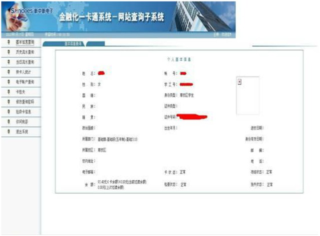 (1)基本信息查询具体操作,点击左侧“基本信息查询”,在右侧显示持卡人的基本信息,操作结果如下: