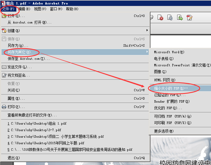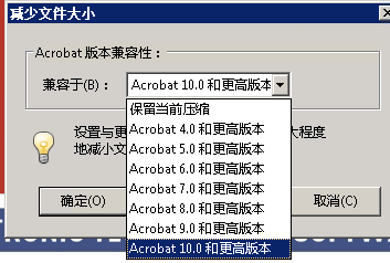使用acrobat软件打开PDF文件,”文件“菜单,选择”另存为其它(H)“,”缩小大小的PDF(R)“