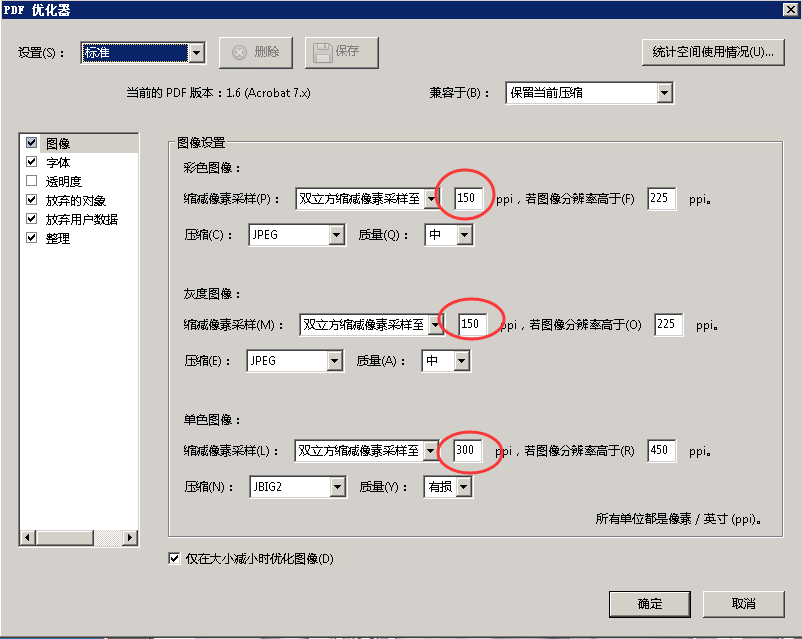 可以设置图像的采样,缩小PDF文件的大小。