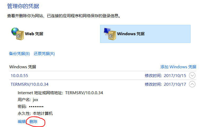 ④ 点击删除,即可取消记住密码。